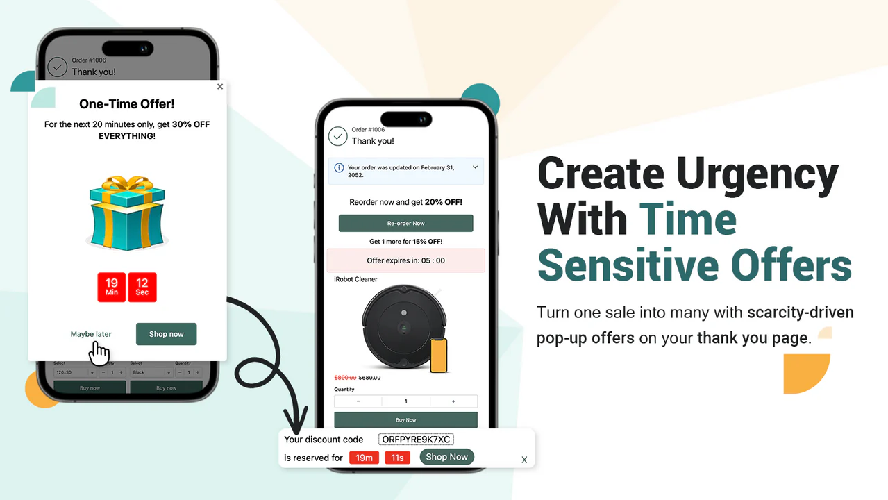 ReConvert allows you to optimize your checkout and order confirmation pages to encourage upselling and cross-selling. By showing personalized product recommendations and offering discounts on follow-up purchases, ReConvert helps you increase the lifetime value of each customer and boost your average order value.